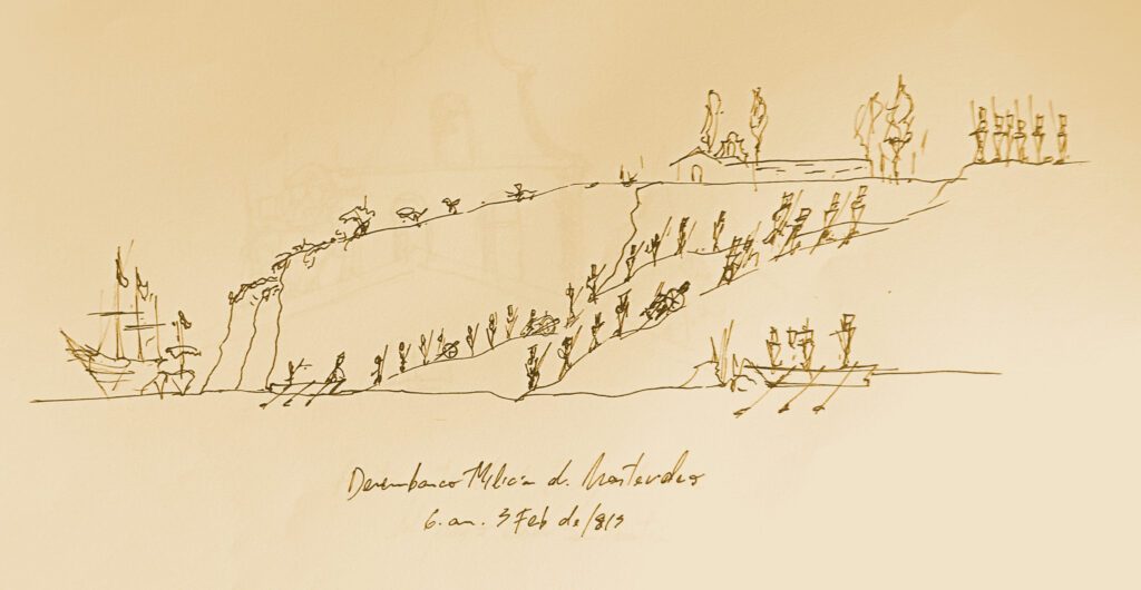 Las Milicias de Montevideo, lideradas por el capitán Antonio Zabala, desembarcaron confiadas en las costas cercanas al Convento de San Carlos Borromeo el 3 de febrero de 1813. Estas fuerzas realistas, al servicio de la corona española, avanzaron seguras de su superioridad numérica y logística, sin sospechar el destino que les aguardaba. Los Granaderos a Caballo de José de San Martín, patriotas valientes y decididos, esperaban listos para actuar. La audacia y la sorpresa de los independentistas convirtieron ese día en una victoria histórica para las Provincias Unidas del Río de la Plata.